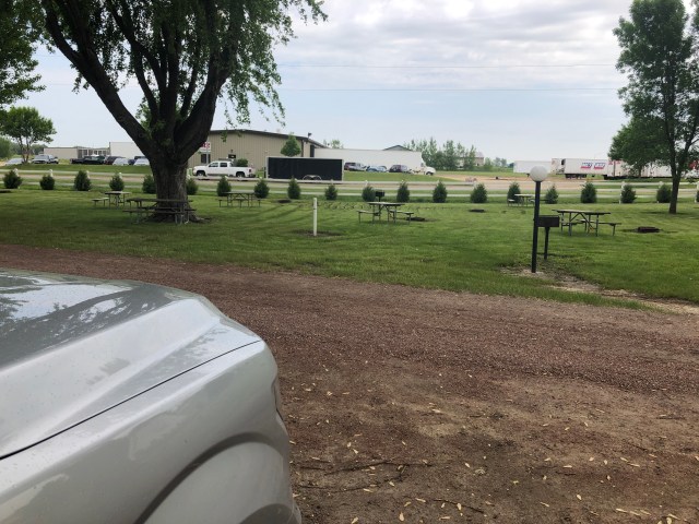 We finally got to the KOA in Sioux Falls. We were pretty disappointed in the KOA, as it was sandwiched between the highway (where the speed limit is 80 mph in SD!) and a trucking company. There was constant noise from vehicles all night. Not to mention we also were placed at a campsite where our only view was the trucking company, a huge RV, and a trailer home with a front loader sitting in front of it. We wouldn’t recommend staying here to anyone unless there is literally nowhere else to camp. We were glad to only be staying one night at this KOA.