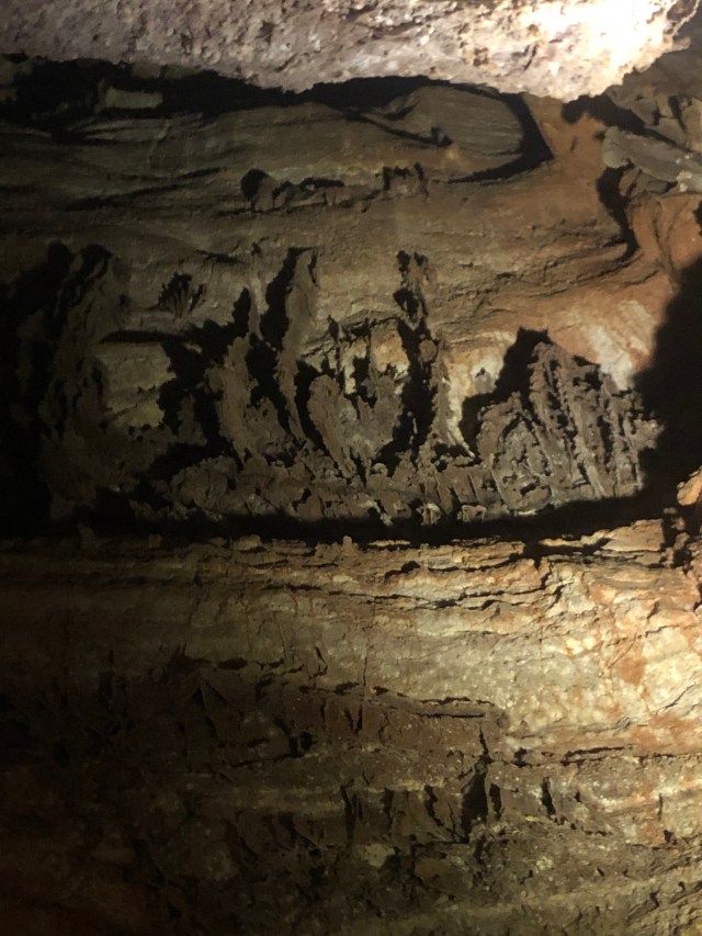 Wind Cave is one of the coolest caves I have ever been inside. What is unique about this cave is it’s makeup. The cave is made up of something called “boxwork”, which is a specific type of formation. Ranger Callie explained that when South Dakota was underwater, the shells of the sea animals fell to the ground to create limestone. Over time, the limestone formed cracks in which calcite deposits formed. When the sea was no longer, the limestone wore away, leaving the calcite “boxwork” behind. Wind Cave is also special because, as Ranger Callie said, it breathes. This cave reacts to the changing pressures of the atmosphere, and breathes in or out depending on the pressure. When we visited, the cave was breathing out in a reaction to the lower pressure from the coming storms.