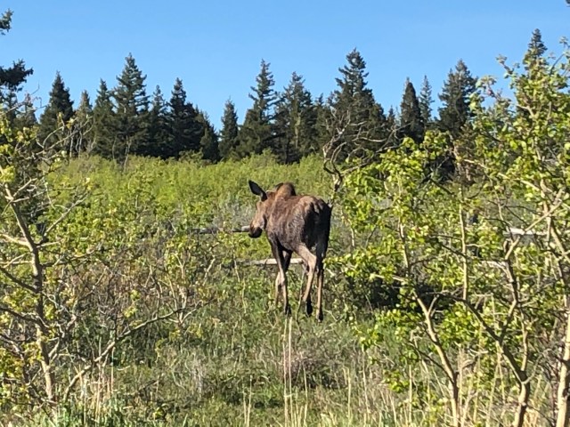 We took our walk around the C loop of the campground, and as we were walking around, we saw the MOST impressive animal sighting of the trip. If you have read our previous posts, you will know that there is one animal we have been looking for since last summer on our trip to New York/Maine. That animal, is a MOOSE! That’s right, a moose right inside our campground. It was so awesome to see! We knew moose were in Glacier National Park, but didn’t think we would see one since we had been unsuccessful so far! It was amazing!