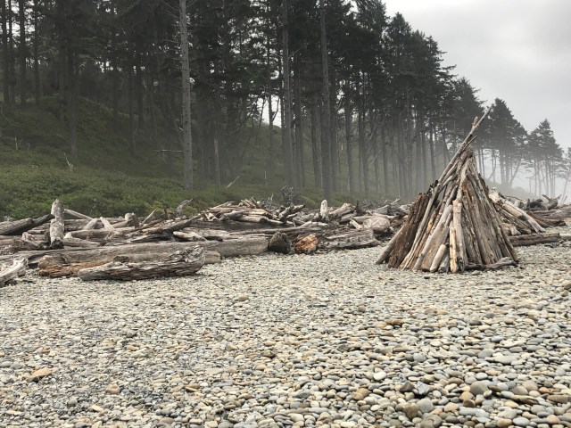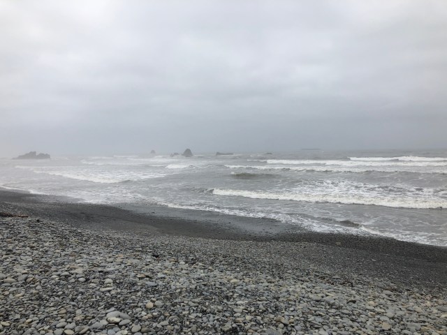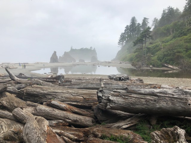 We got to the truck, and headed out! We wanted to make a few stops before leaving the national park. We first stopped at Ruby Beach. The entire beach was made up of rocks and driftwood, and it was a cloudy and foggy morning (typical for the peninsula).