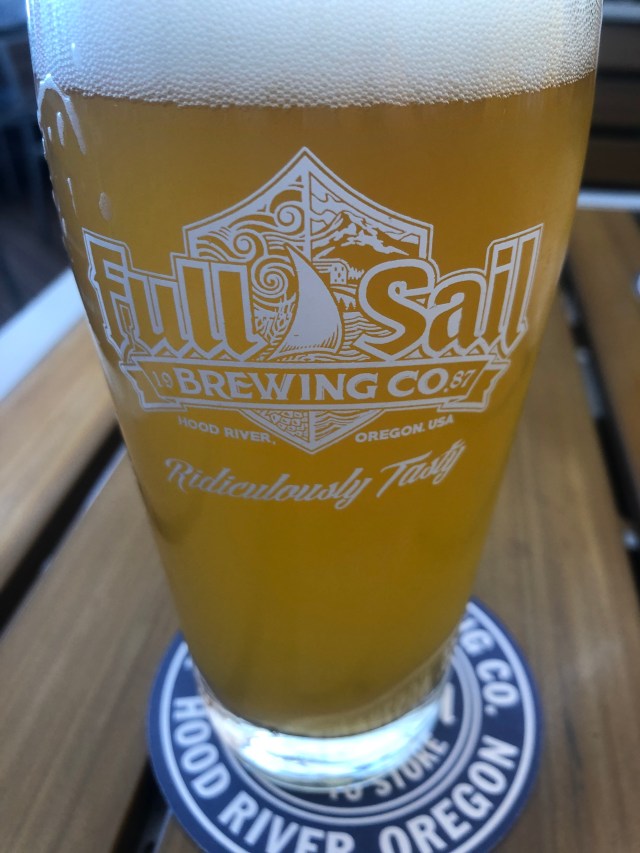 We parked the camper, and headed into town. There are tons of breweries in Hood River, which Scott and I enjoy trying. There were two that I wanted to visit, but we ended up only going to one of them (Scott was tired! š ) Full Sail Brewery is AWESOME! Scott tried the Atomizer IPA and I got a Blood Orange Wheat Ale. While mine was good, Scott’s was awesome! We bought a 6-pack on our way out the door! Plus, their food was amazing! It was nice to get somewhere and take a little break from camping and cooking!