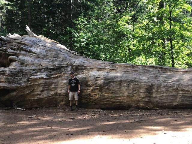 We took the shuttle back to the center of the valley, and decided to head out for the day. We wanted to stop and do a hike where we could see some Sequoia trees. We decided to take the hike at Tuolomne Meadows. The hike was only about 1.5 miles, but it was kind of a bummer of a hike. We saw a few sequoia trees, which admittedly were pretty awesome. However, the majority of the trail was an old paved road, so it wasn’t exactly the nature hike we were looking for. On our way back to the car, we actually saw a bear in the woods, pretty neat sighting!