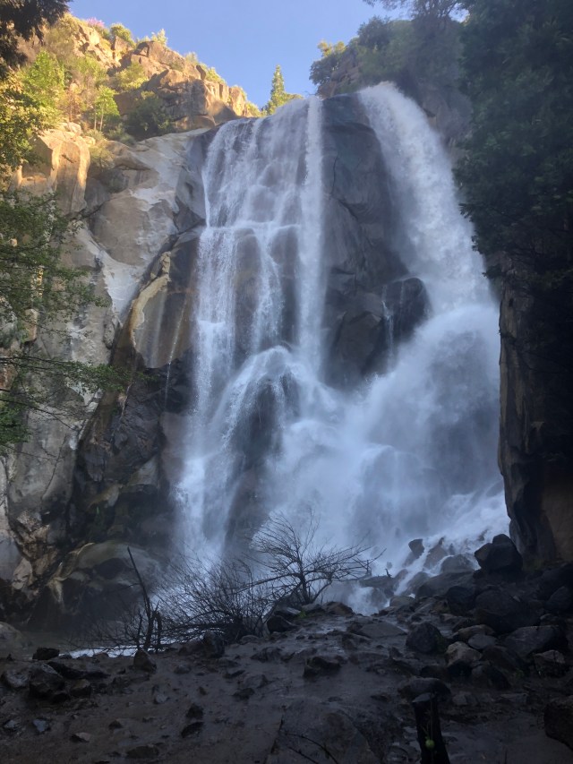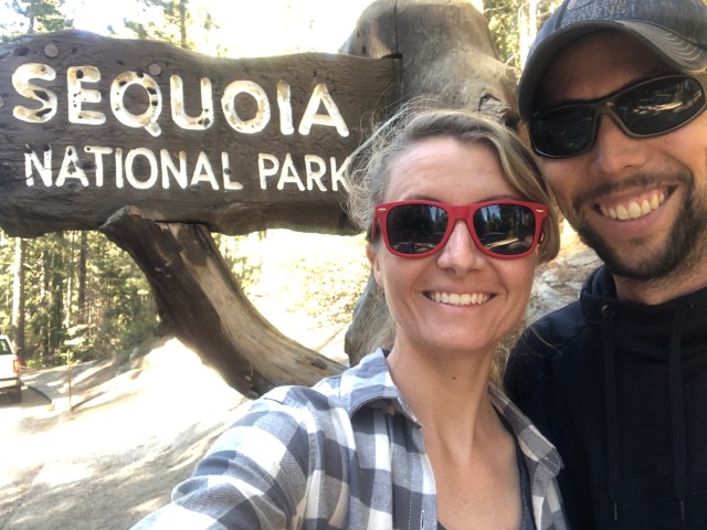 Today, we work up early at our campsite in Kings Canyon NP and planned on spending the day at Seqouia National Park. We stopped at Grizzly Falls on our way toward Sequoia. It was a VERY short walk to get to the falls (you could almost just sit in your car look at the falls if there weren’t trees in the way! We stopped here because the day before we had seen a lot of people stopped here. It was neat, but not a must-see.