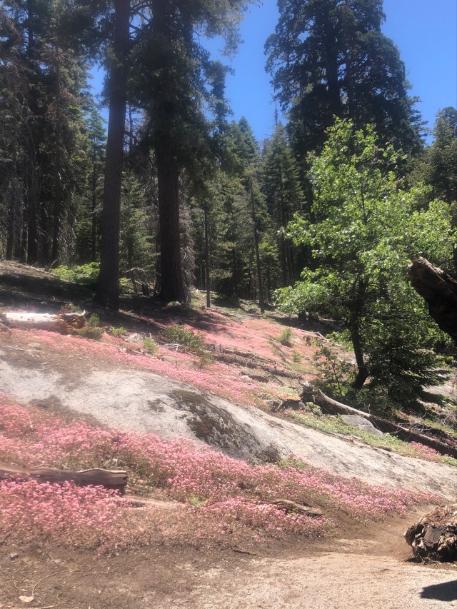 Rather than take the shuttle back to the truck, we decided to do some hiking. We took the Congress Trail (full of massive Sequoias) to the Alta Trail which eventually led us back to our destination. In addition to seeing all of the sequoias, there was plenty of wildlife and nature to see. I particularly loved these pink flowers that covered the ground- they were so beautiful!