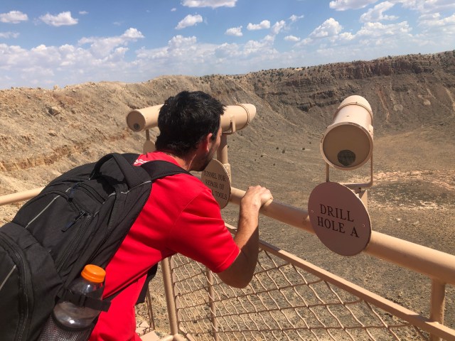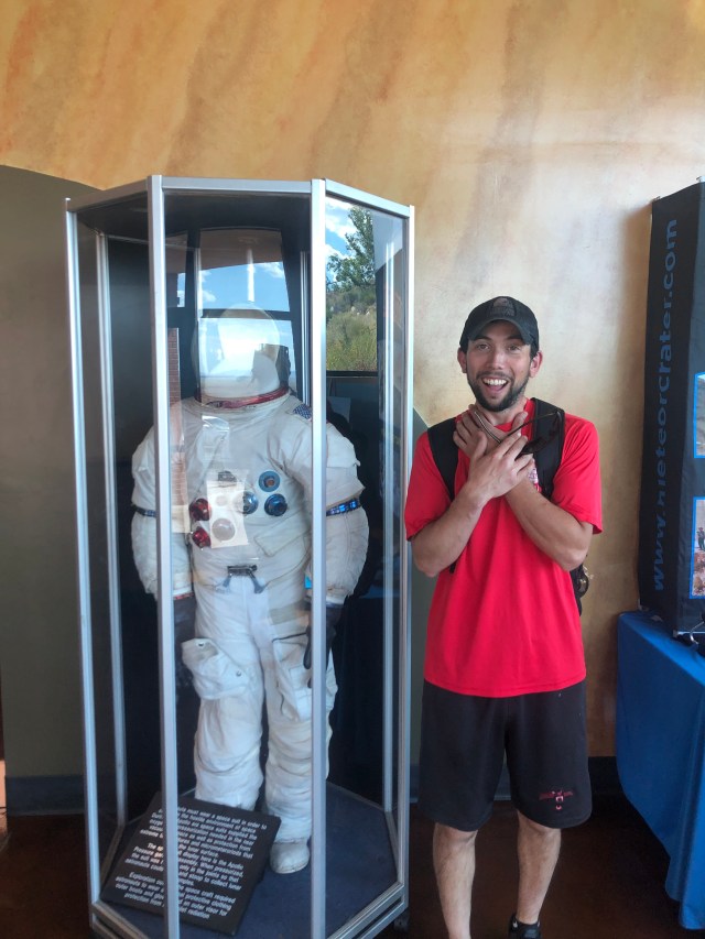 We headed out toward Petrified Forest National Park. Along the way, Scott really wanted to stop at the Meteor Crater site. He has these memories from his childhood of seeing the Meteor Crater and how massive it is and how they put an Astronaut down by the meteor. We bought our tickets and walked outside. I headed toward the stairs that I saw outside as I assumed we needed to go up them to see the crater. Scott said “where are you going? The crater is right here!” I guess in my mind, I wasn’t looking to see a hole in the ground. It really looked to me like someone just dug a bunch of dirt out of the ground and piled it up! Scott was disappointed that I wasn’t impressed. You couldn’t even see the meteor because it’s deep in the ground still!