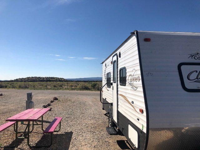 We woke up at the KOA in Grants, NM and looked out the windows to see that our campground had lava rock EVERYWHERE! We had pulled in so late the night before that we didn’t even notice it! Really cool! We drove to Albuquerque, NM where we had planned to stop for lunch. Scott’s uncle Dan and aunt Karen live there and we wanted to visit on our travel home. We went to this really yummy Mexican restaurant (it was nice eating food that we didn’t have to cook! It was nice for me to meet his uncle and aunt, and good for Scott to see them again!