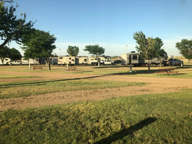 Our stopping point for the night was the WaKeeney KOA in WaKeeney, Kansas. We have stayed at KOA’s in the past, and while they aren’t our favorite places to stay, they are convenient and have all the amenities you could want from a campground. This KOA was above the rest, however! We were greeted by the most friendly staff who provided us with a lot of great information and directions, and they even had a worker escort us to our campsite! The campground was super clean and well maintained. There were flowers everywhere, and even though I had read reviews of there being no trees (VERY common in the high plains), the campground had a fair amount of them!