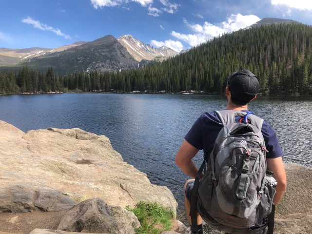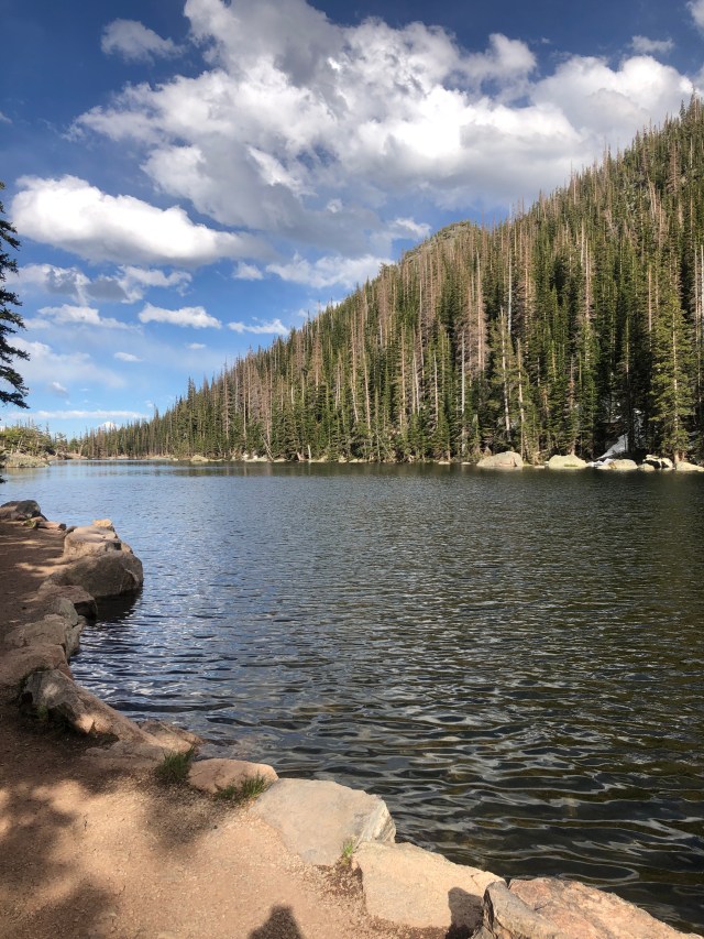 Bear Lake is a VERY popular destination in Rocky Mountain National Park. The lake is beautiful, and the hike to it was maybe 500 feet. Lots of people were at this lake. We kept hiking, and saw 3 more alpine lakes (Nymph, Dream, and Emerald Lakes). Each lake was incredibly beautiful! At the end point of Emerald Lake, there were quite a few people. We also wanted to be sure we got back to the bus stop before the busses ended for the night, so we took a few pictures and enjoyed the views for a little while, then headed back down.