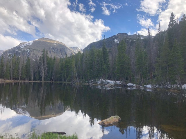 Upon arriving at the national park, we had to do a reservation check in before we got to the main gates. Rocky Mountain National Park has only been open for two weeks, and they are using a reservation system to limit the number of people allowed in the park. Luckily, we have had this vacation planned for a while so we easily got through the check point and into the park with our camping reservation.