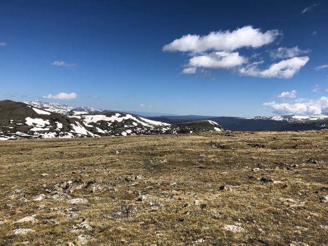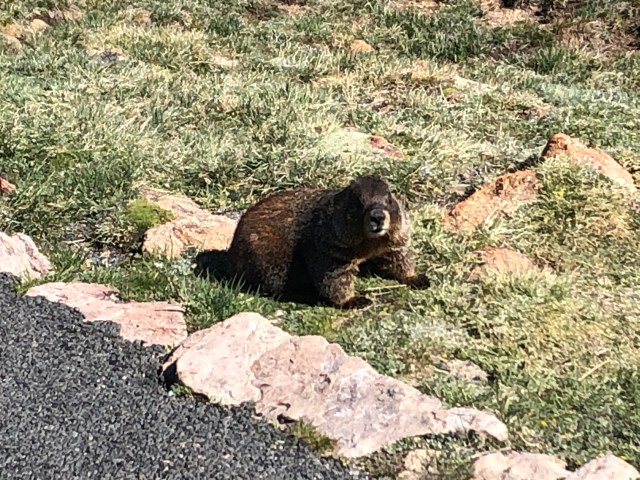 On the drive, we stopped at a few viewing areas, Rainbow Curve, Many Parks Curve, and a few others. Once we had arrived at alpine elevation, we stopped at Forest Canyon Overlook. This was a cool overlook that you walked a short distance to. This was a rather neat overlook area- there were a bunch of marmots around, we could see herds of elk in the distance, and the alpine vegetation was incredible!
