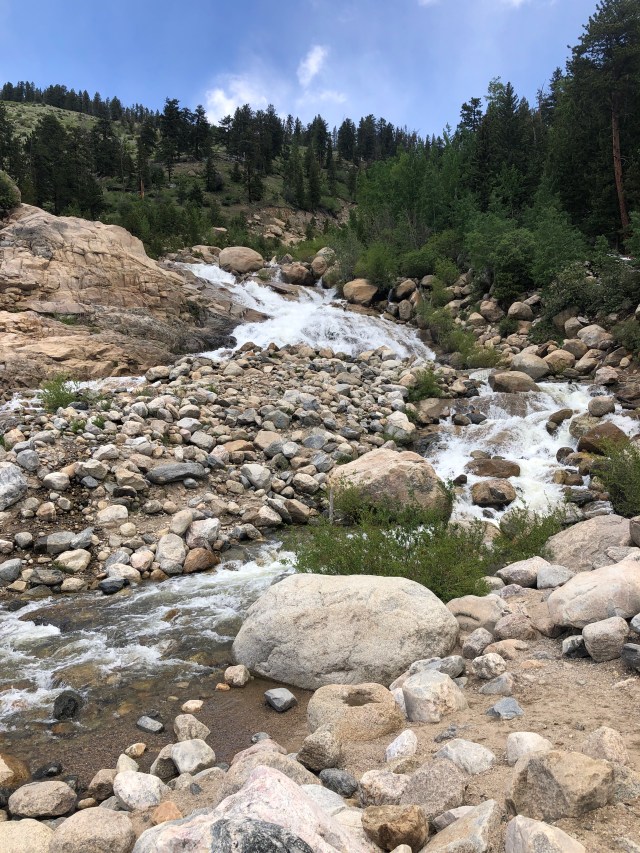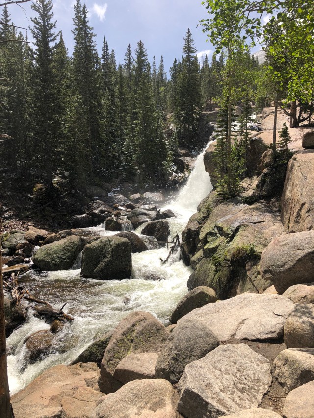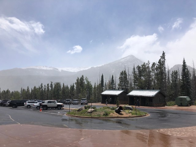 Our plan this morning was to take a 9.8 mile roundtrip hike up to Sky Pond. This was a hike that one of my coworkers had suggested we do, and I was pretty pumped to do it! However, we woke up to snow and ice outside. This may not seem too horrible for some mountain hiking, but the temperatures at our campground were below 40 degrees, and we knew the mountains would be much colder. There is also part of the hike that requires some rock climbing at Timberline Falls. The park ranger we had spoken to previously told us to be really careful at that area because it can get icy and slippery and a lot of people get hurt climbing it when the weather isn’t good. Therefore, we sadly decided to cancel this hike.