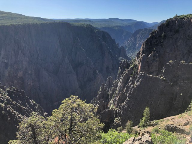We arrived back to the car and took the drive down S. Rim Road. We stopped for a few viewpoints- Sunset View, Dragon’s Point, Chasm View, and the Painted Wall. These were all equally stunning views of the Black Canyon.