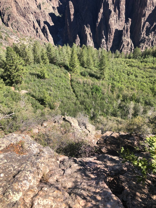 The next morning in BCGNP brought us an early wake up call. Our campground had hiking trails right off it, just like in the Rockies! We took the Rim Rock Trail to the visitor center (about 1 mile). What we didn’t realize until we entered the trail were three things: