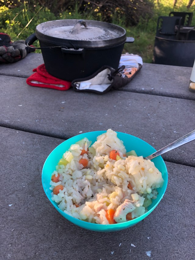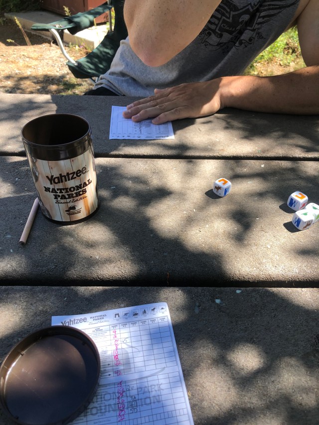 We went back to the camper, having successfully hiked almost every trail we could on the South Rim. We relaxed a little, took cold showers to get the dust and heat off our sunburnt bodies, and enjoyed some down time. We also played some National Parks Yahtzee! We busted out our new cast iron pot that has an inverted lid to hold coals. I made some really good chicken and rice soup with biscuit dumplings, and we learned a little about how to use the inverted lid (it totally worked and browned the tops of the dumplings- it was amazing!).