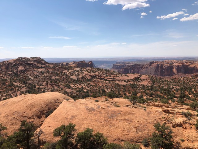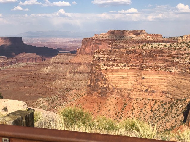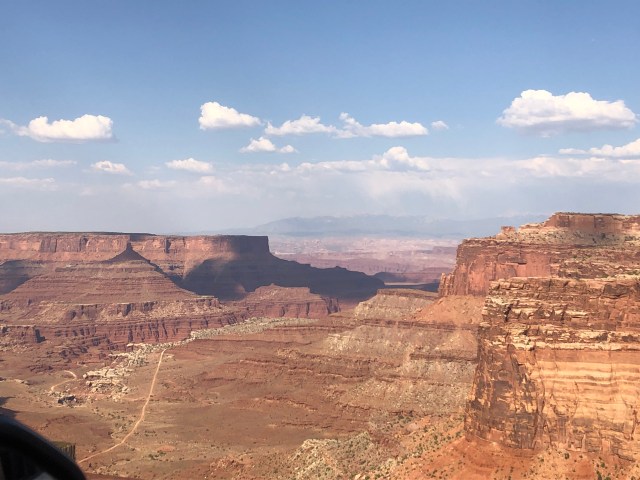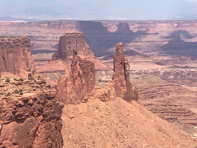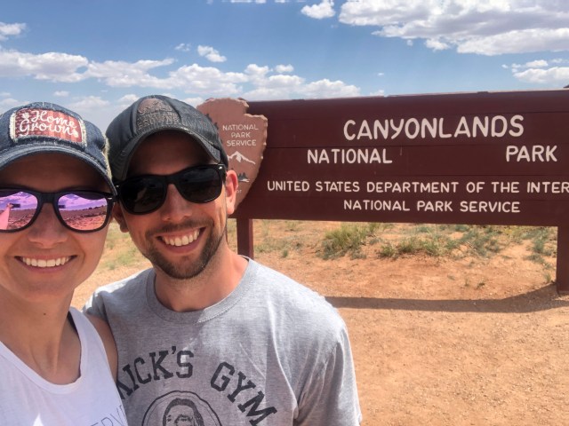 We ended the day by driving to the Grand View point, where you get a great view of the White Rim Road- a 100 mile dirt/gravel road that you can drive through. They recommend you do it in two days, and camp one night in the desert. We didn’t do this drive, but it’s something we both want to come back and do! We also stopped at Buck Canyon overlook, to get one last view of the Island in the Sky section of Canyonlands. One thing we have learned already about Canyonlands National Park is that it truly is a hikers’ park. The trails we did were relatively short and easy for us to do. There are much more difficult and lengthy hikes in Canyonlands than short hikes. Most hikes are 10+ miles, which we weren’t planning on doing this trip (summer is HOT in Utah! It’s been 95+ degrees every day).