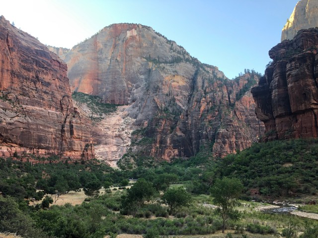 Getting a parking spot was just the beginning. Since the shuttle isn’t running, we had to walk to anywhere we wanted to go in the park. I really wanted to hike into the Narrows, which was a 3.5 mile walk on the road just to get to. Once we got to the trail head, we had a mile walk along River Walk Trail to get into the Narrows.