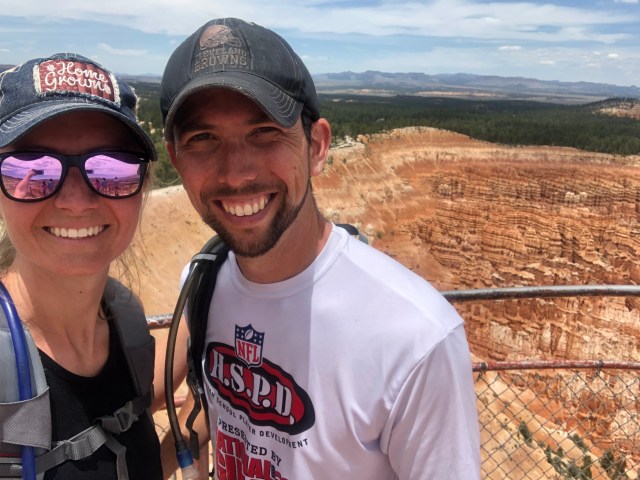 From Inspiration Point, we again decided to hike uphill to get to Bryce Point. Bryce Point boasts the best views of the park and is probably what we have seen the most pictures of. This hike was 1.3 miles and again, uphill π Scott and I agree that making ourselves do things like this is why we will live to 100 years old! Bryce Point did not disappoint, and the views were spectacular! We also got a chance to talk to a couple who gave us some insider info about Zion, which was perfect because we were heading there the next day.