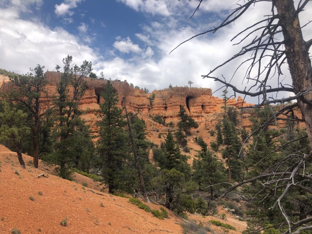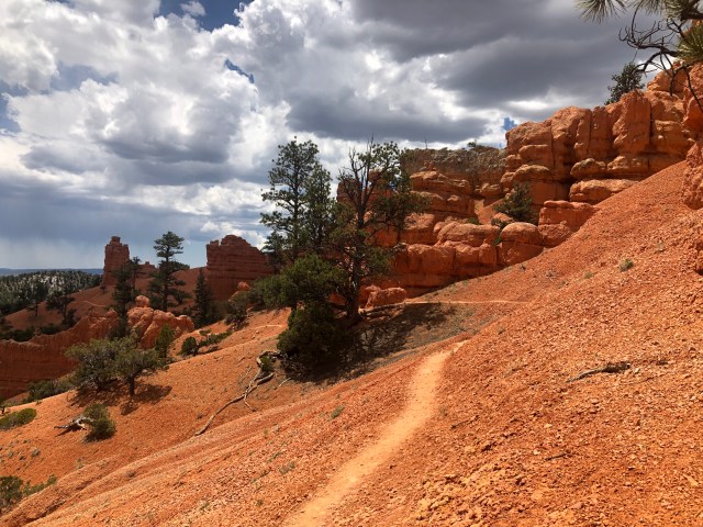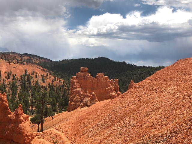 After bumming around all morning, we headed out of the campground to the Red Canyon district of Dixie National Forest. We had been to the visitor center to get information about camping a few days earlier, so we decided to go back and hike the trails around it. We took the Pink Dunes Trail to the Hoodoo Trail to the Birdseye Trail and back. This gave a really impressive of the beginnings of Bryce Canyon and all the hoodoos and amazing colors in the rock!
