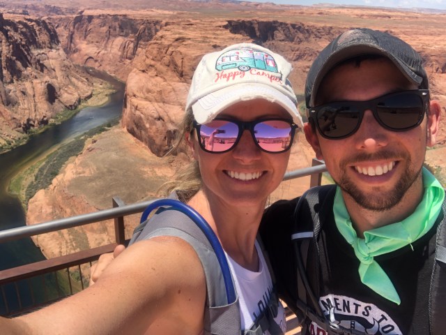 The next day, we left Kings Creek Campground and Utah. Looking at a map, you would think the drive wouldn’t take very long- they aren’t that far apart! However, there are no direct roads, and we would either need to backtrack up to Capitol Reef NP and then head back south, or go down into Arizona and back up. We opted for the latter (we hate backtracking!). Along the way, we drove across the Glen Canyon Dam, and stopped at Horseshoe Bend. This is something I had seen pictures of and thought it was just a stop along the road. Wrong! It’s owned by the Glen Canyon National Recreation, as well as the city. You pay $5-$10, depending on what you are driving, to park and walk down to the viewing area. Not a must see stop, but it was nice to get out and stretch our legs. Plus, on the way back we helped a woman who didn’t have water for her dog who was overheating, so it was fated for us to stop when we did!