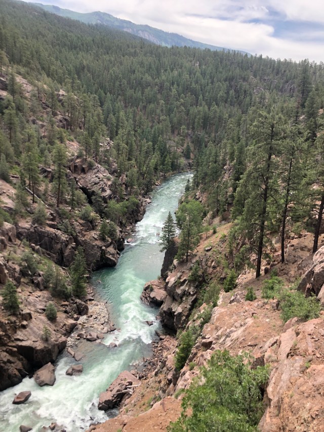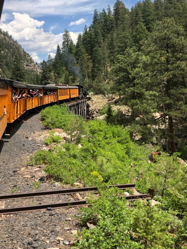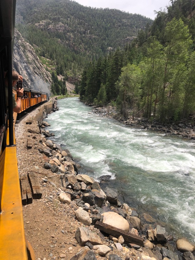 We boarded the train, and were off! The train doesn’t move very fast, but it’s really cool sitting in the open air cars where you have unobstructed views! The train followed the Animas River before turning around and coming back. The only hiccup we had was when we were almost back to the station. The guide wheel on the engine derailed (sounds WAY scarier than it was!), and we had about a 30 minute delay while they went back and forth to get it back on track. Something to remember for sure! If you are ever in Southwest Colorado, I definitely suggest taking a train ride at Durango!