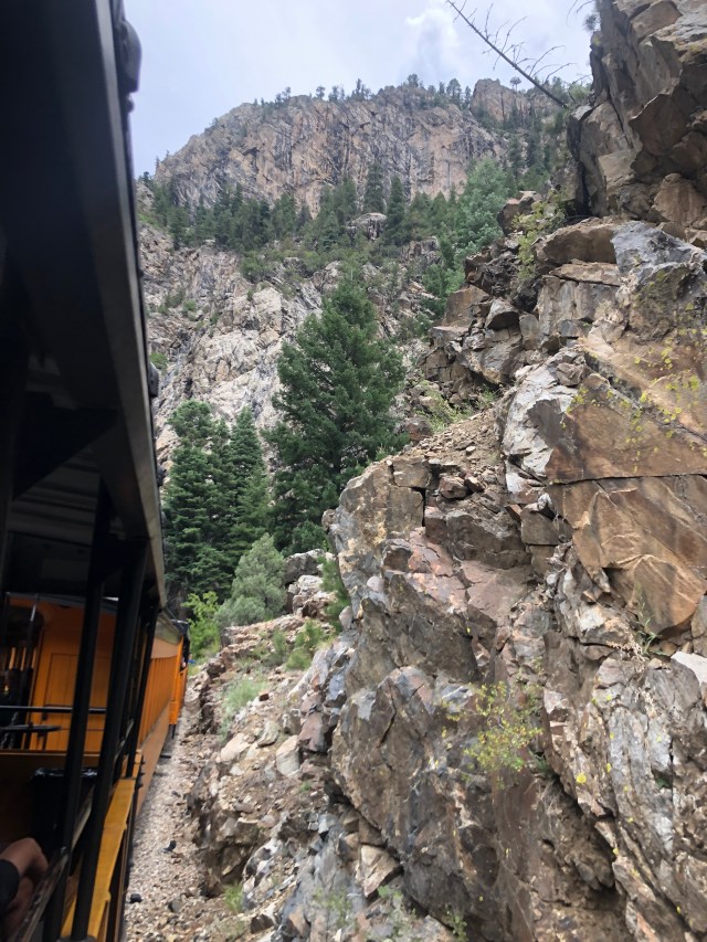 Anyway, he loves trains. He suggested that we try to ride the train on our trip if we were able to. At the beginning of the trip, all Durango trains were halted. It wasn’t until a couple days ago that they opened up one line to take passengers from Rockwood Station (just north of Durango) through the Cascade Canyon. It was to be about a 2 hour roundtrip journey. We bought the tickets for the steam train, in an open air cart.