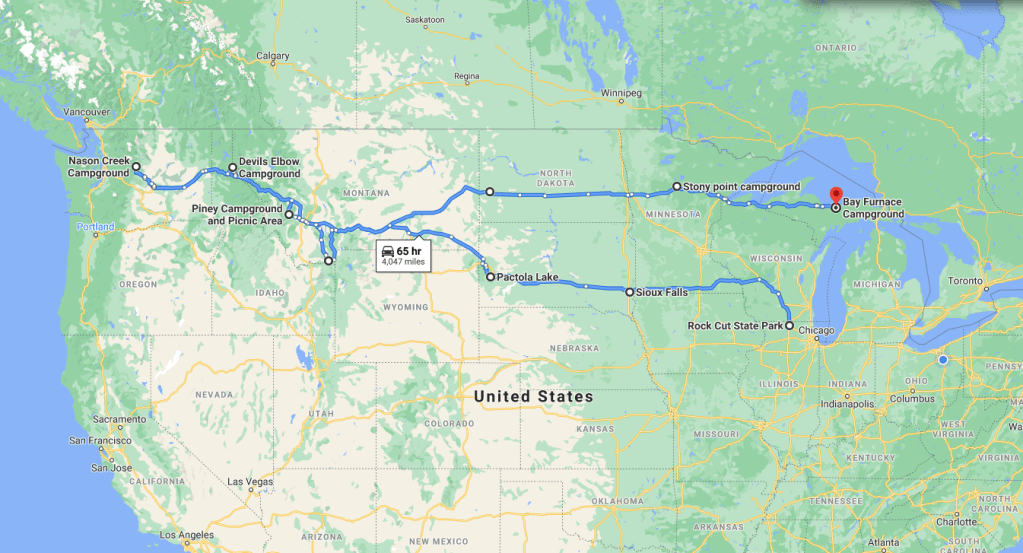 Well, it’s that time of year again! We are heading out soon for our Summer vacation. Finally, FINALLY we are taking our beloved dogs with us. Send us good thoughts as we adjust to having our well-behaved 8 year old, Freddy, and our WILD child 6 month old puppy, Adrian. The map below shows our vacation trip. We are excited to come back through the UP of Michigan, ending our trip with a family wedding!